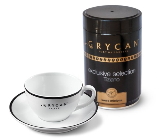 Zestaw prezentowy! W zestawie znajduje się filiżanka firmowa ze spodkiem oraz oryginalna mieszanka kaw (85% ziaren arabica z Brazylii i Środkowej Ameryki oraz 15% robusty pochodzącej z Indii) osobiście wybrana przez Elżbietę i Zbigniewa Grycanów w rodzinnej włoskiej palarni. Poczuj się przez chwilę jak w lodziarnio-kawiarni Grycan!